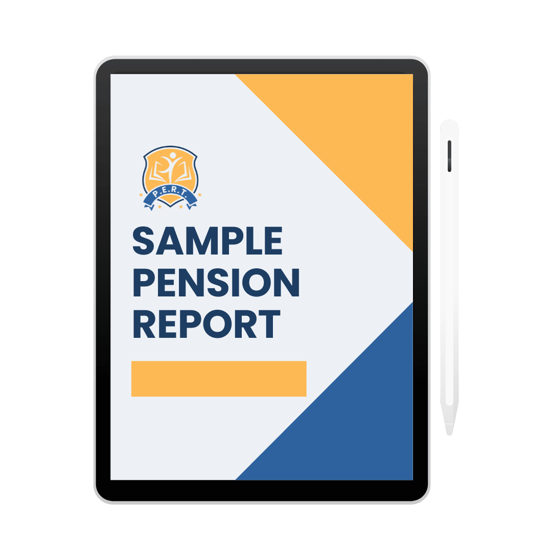 A comprehensive report that will detail your projected pension income, social security income, beneficiary options and income shortfall at different ages throughout retirement adjusted for inflation. This report is based on YOUR specific information (age, pension system, years of service, tier based on enrollment date, income, etc.).